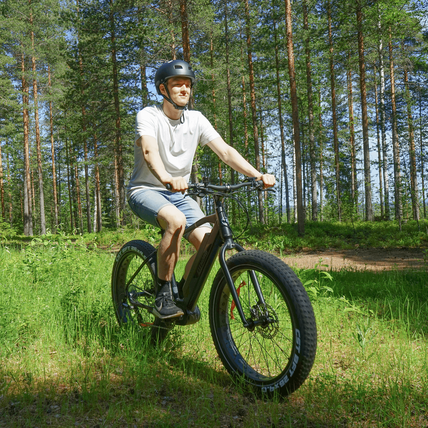 Sähköfatbiken erottaa ensisilmäyksellä tavallisesta sähköpyörästä sen massiiviset ja vahvasti kuvioidut renkaat. FitNord Rumble 500 on varustettu halkaisijaltaan 26 tuumaisilla ja leveydeltään 4 tuumaisilla pistosuojatuilla CST BFT (Big Fat Tire) C1752 -renkailla, jotka tarjoavat hurjan määrän pitoa ja etenemiskykyä erilaisilla pinnoilla. Sähköfatbiken renkaat toimivat samalla myös jousituksena, eli ne pehmentävät tehokkaasti kivistä, juurista, kuopista sekä katukivityksistä aiheutuvat iskut ja tärinät. ”Jousituksen” ja pidon säädellään renkaiden ilmanpaineella; pienemmillä paineilla enemmän pitoa ja joustoa hankalampaan maastoon, suuremmilla paineilla enemmän vauhtia ja rullaavuutta asvaltille. Paino jakaantuu leveillä renkailla suurelle pinta-alalle, joten ne eivät ole herkkiä rikkoontumaan esimerkiksi hiekoitussepelistä tai lasinsiruista.FitNord Rumble 500:sen painopiste on keskimoottorin ansiosta keskellä ja alhaalla, mikä parantaa sähköfatbiken tasapainoa, hallittavuutta ja ajotuntumaa. Tämä on tarpeen erityisesti hiemankin haastavammassa maastossa ajettaessa, mutta tekee pyöräilystä nautinnollista myös kaupungissa ja teillä poljettaessa.