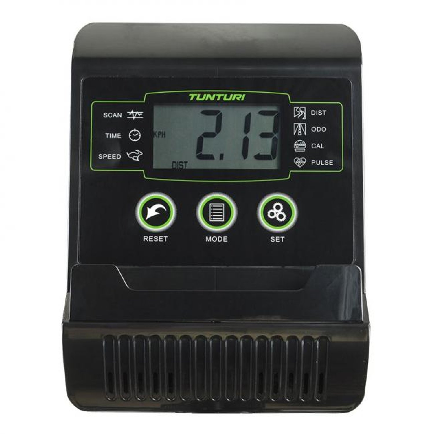 Cardio Fit B30 kuntopyörän mittaristo toimii paristoilla, joten laitteen ei tarvitse olla virtalähteen äärellä. Tämän kuntopyörän voi siis sijoittaa vaikka keskelle olohuonetta TV:n eteen ja kuljettaa harjoituksen jälkeen näppärästi sivummalle. Näytöltä voit seurata nopeutta, matkaa, kaloreita ja aikaa.